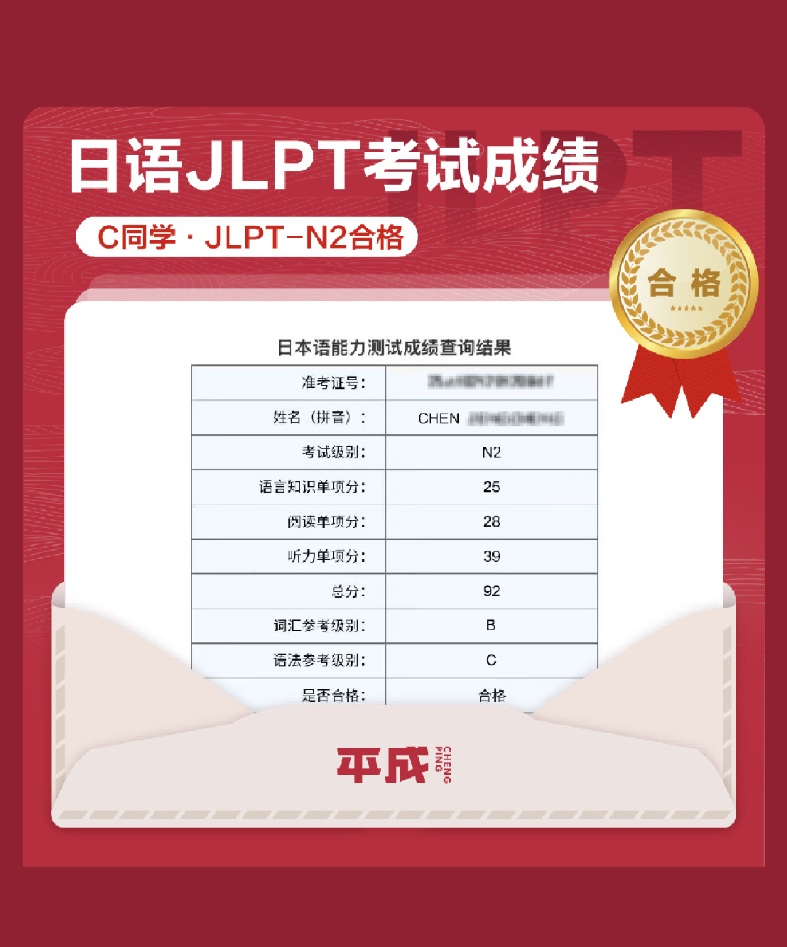 C同學(xué)在2025年8月的JLPT考試中獲取92分